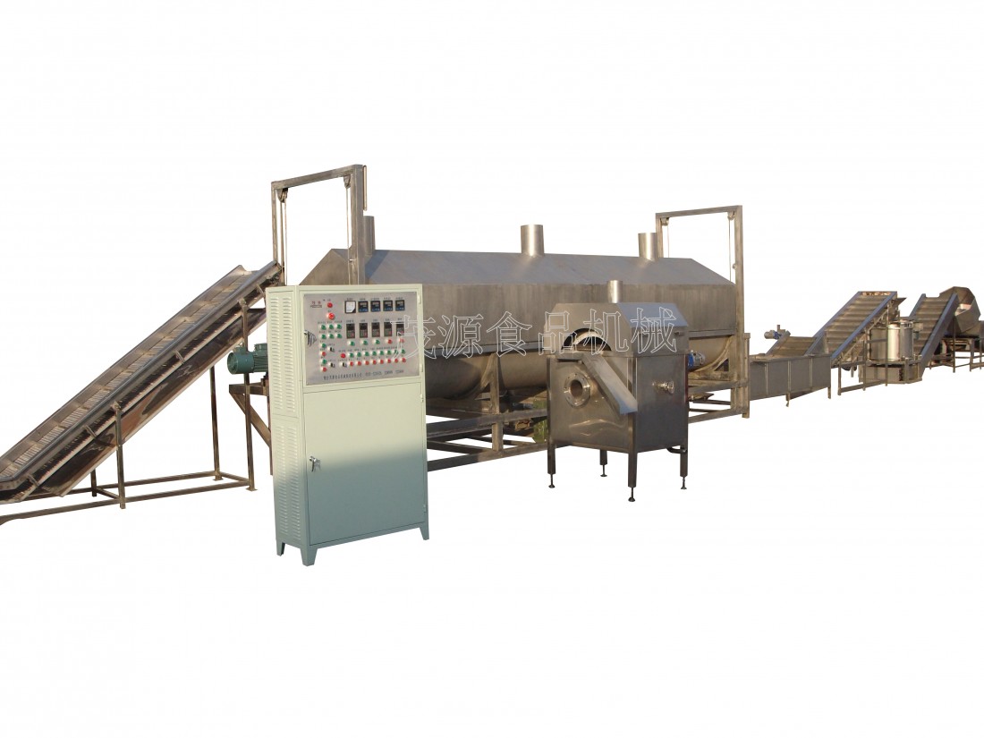功能:可實(shí)現(xiàn)從原料投入到成品的全自動(dòng)化連續(xù)工作,即可連續(xù)油炸,在線(xiàn)濾油,脫油,冷卻,拌粉(添加劑混合)。